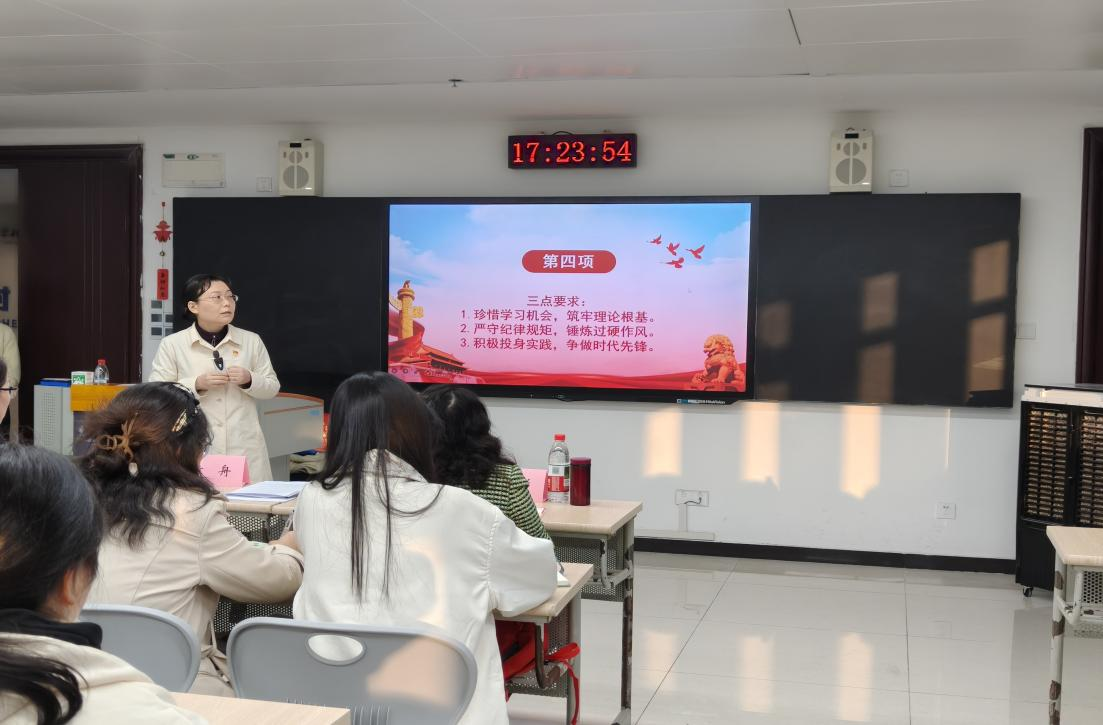 学员代表杜明月作表态发言。她表示:“要认真学习党的理论知识,坚定理想信念,以实际行动积极向党组织靠拢,争取早日成为一名合格的共产党员,让青春在党和人民最需要的地方绽放绚丽之花!”段春燕副院长宣读《分党校管理办法》,详细解读了分党校的培训纪律与考核要求。