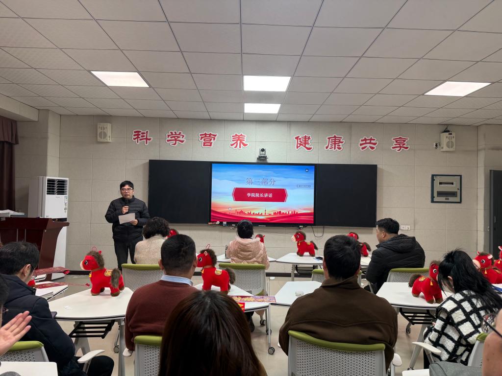 学院院长杨宗发回顾了学院2025年在党建、教学、科研、管理等方面取得的成果,特别肯定了学院在党建、师德师风等方面取得的突出成绩。并对新一年的工作提出希望与要求:全体教职工要凝聚共识、积极作为,持续深化教育教学改革,加强师资队伍建设,推动科教融合,提升学院整体办学水平与社会服务能力,共同开创学院发展新局面。