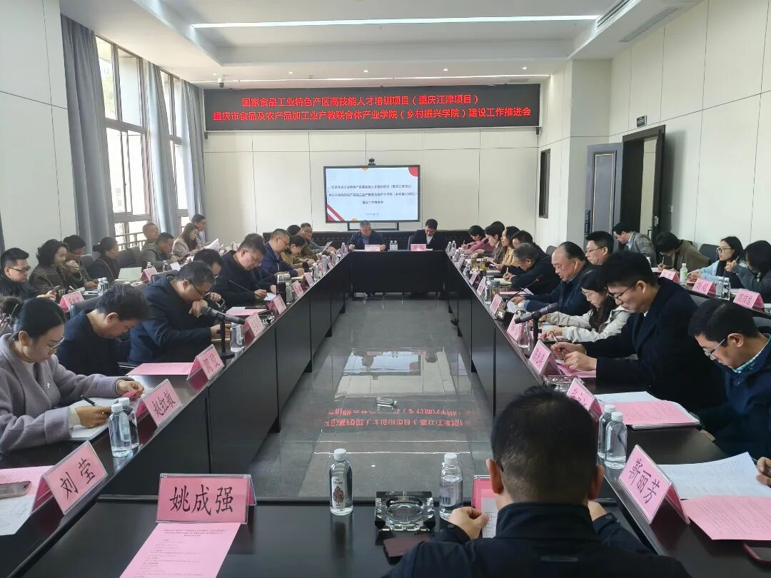 本次推进会由重庆市江津区西部食谷产教融合中心主办,汇聚了来自市教委、江津区教委、德感工业园区、上海合作组织国家多功能经贸平台教育工作联盟、重庆金桥投资控股(集团)有限公司及相关高校、职业院校、行业协会、龙头企业的代表,围绕产教融合、产业学院建设、高技能人才培养等议题展开深入交流。