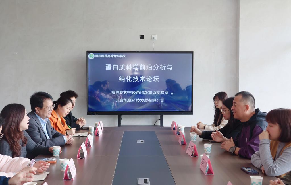 培训结束后,双方举行座谈。医学技术学院院长杨宗发介绍了学院在病原防控和疫苗创新领域的学科布局与人才储备,强调要依托重点实验室平台,将先进技术快速转化为科研生产力。实验室负责人许崇利教授结合团队当前承担的课题,提出在重组蛋白表达纯化、新型疫苗佐剂开发等方面与企业的合作意向。北京凯奥科技发展有限公司董事长黄明贤表示,企业将充分发挥设备研发与技术服务优势,为实验室提供长期技术支持,开展横向科研项目合作并探索共建联合实训基地等合作模式。